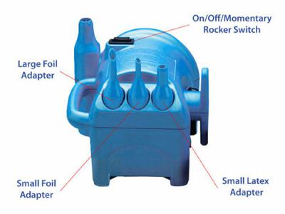 The Cool Air Electric Balloon Inflator for example is a solid machine with 3 airflow levels. It fills a 16" latex balloon in less than 5 seconds and comes with 3 reducer nozzles and a one year guarantee.