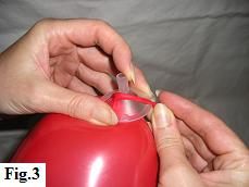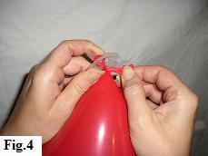 Then feed the neck through the other slot of the cup holder (fig. 3) and twist it round twice between the cup and the balloon (fig. 4).