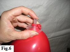 Finally, insert the neck into one of the slots again (fig. 5). That's your balloon sealed and secured (fig. 6).