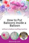Answer: You slip the small balloon over a chop stick, which makes it much easier to insert it into the big balloon. Make sure that the necks of the two balloons are aligned before you withdraw the chop stick. Now inflate the outer balloon first and then the inner balloon. The trickiest bit is to knot both necks at the same time without losing too much air or helium. As an easy alternative you could use a small food bag clip to seal the balloon necks.