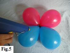 When you're happy, put small blobs of glue onto the four 'base' balloons (fig. 5). Then attach the head (fig. 6).