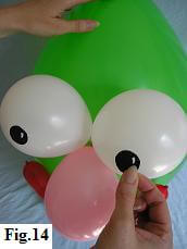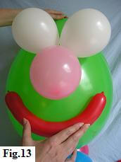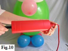 Now let's give him a big cheeky grin! Using a balloon pump inflate one of the twisting balloons (fig. 10).
