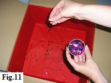 Sprinkle some decorative metallic confetti into the box. We used multi-colored balloon and star shaped confetti (fig. 11).