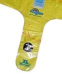 Foil Balloon with Self-Sealing ValveThe balloons should have hanging tabs on the top, sides and bottom, for various ways to display them. Like most foil balloons, they should also have a so-called self sealing valve, as seen in the image.