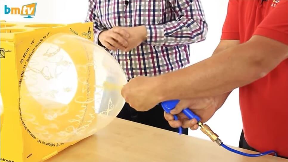 When creating the Christmas balloon centerpieces, take into account factors such as the height at which the balloons will rise, the anchor you will use to hold the balloons in place, and the number of balloons. An uneven number of balloons in each centerpiece usually looks best.