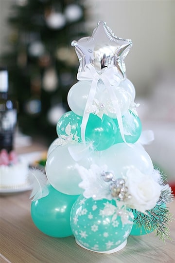Beautiful example for an air-filled centerpiece: Mini Christmas Tree in turquoise, white and silver [Source: upbeat-balloon.co.jp]First, you'll have to decide whether to go with a helium or air-filled centerpiece.
