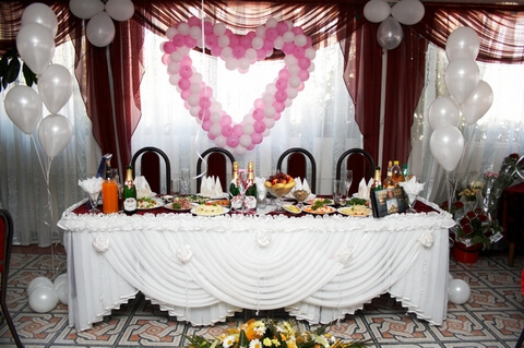 The balloon heart and floor standing balloon bouquets frame the head table beautifully.You want the head table to look extra special and all the same compliment the style of the whole reception decor. Whilst there are virtually no limits to the colors and styles you can choose from, there will always be the same elements you need to consider. Let's go through each of them.