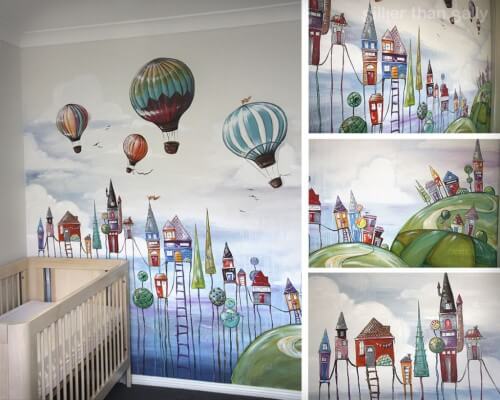 Below is an exceptionally beautiful and quirky example of a hot air balloon mural. You can tell that it's done by a professional artist. Don't try this at home. ;-)