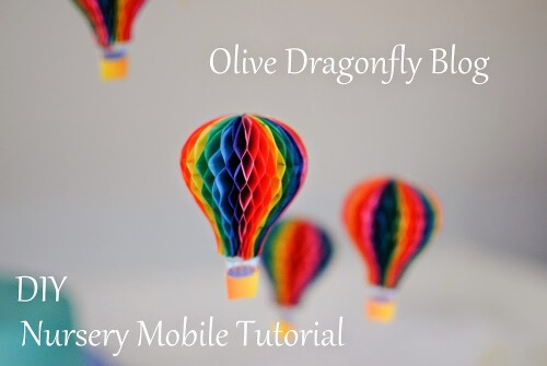 Bex from the Olive Dragonfly Blog published a DIY tutorial for creating this beautiful hot air balloon mobile in the picture below.