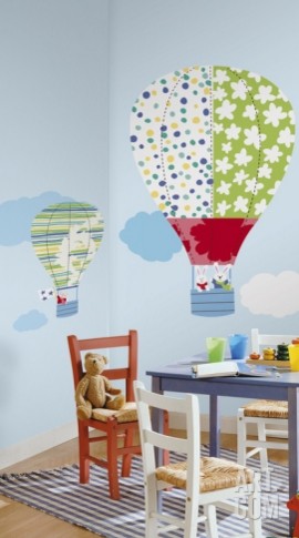 Consider a mural if the nursery features a wall without windows or a closet. You can print hot air balloon clip art from the Internet onto transparency paper and then borrow a projector from the library or local school to project the image onto the wall.