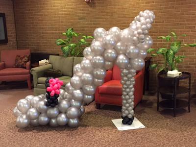 You can also create the shoe by simple using a garland made of 4-balloon clusters, and tied together with 260Q balloons.