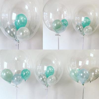 If the bubble balloon is filled with air, fill the mini balloons with air as well. If the outer balloon is helium-inflated, the small balloons need to be filled with helium as well.
