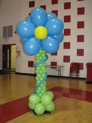 What I would suggest is that you have two 5 petal flower balloons as the column topper, back to back, one on each side of the center pole.