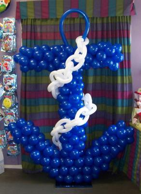 The anchor is made of 5 inch round latex balloons, blown up to 3 inches. The balloons used for the chain are twisting balloons. I think they are either 260Q or 350Q - they look thicker than the 160Q type.
