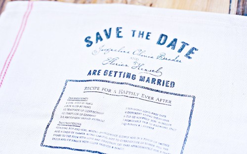 Everyone needs tea towels, therefore why not give your guests a useful save the date that they can’t miss? Give them a tea towel with your names, wedding date and location embroidered on the fabric to transform it into a quick and easy reminder.